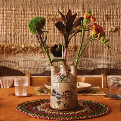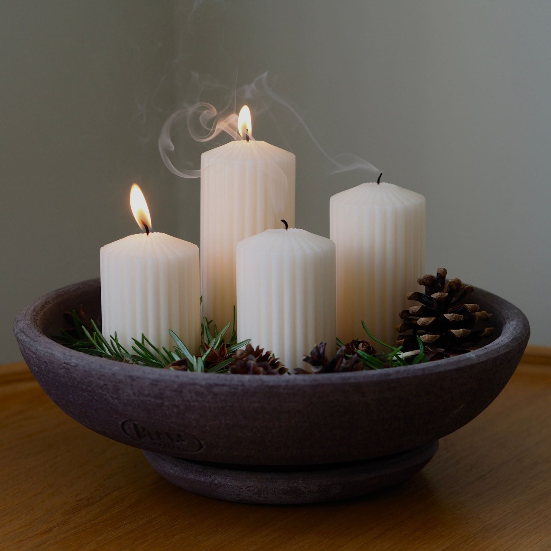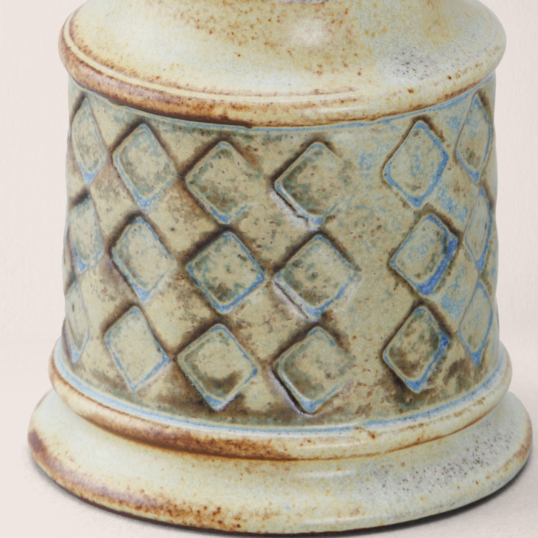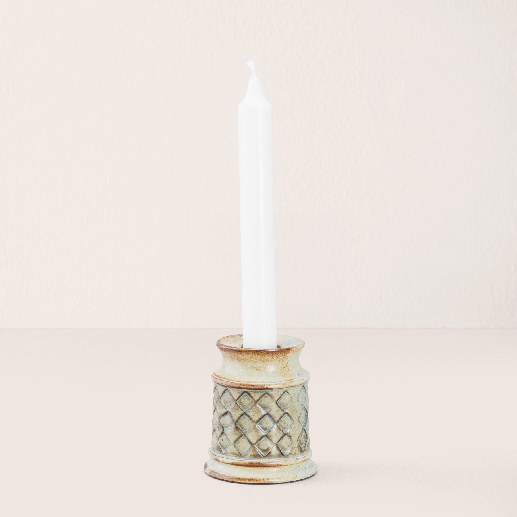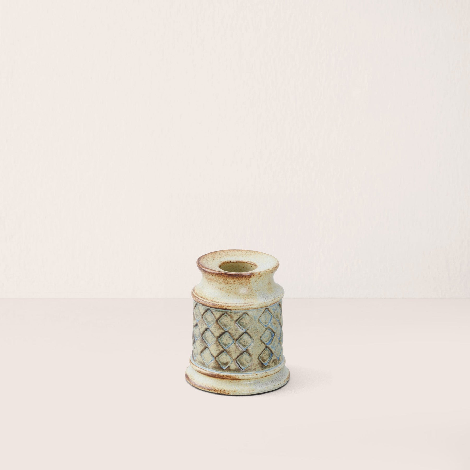 Bring a warm glow and quiet texture to your space with this set of two handcrafted candle holders by Kashiwa Craft. Made from Seto’s signature red clay, each piece features subtle geometric reliefs — one with a triangular motif, the other with a diamond pattern — offering a soft interplay of light and shadow. Finished with a natural, earthy glaze that varies slightly with each firing, these small holders are perfect for creating moments of stillness on a shelf, table, or bedside. Simple, sculptural, and rooted in tradition — a celebration of form, fire, and everyday beauty.