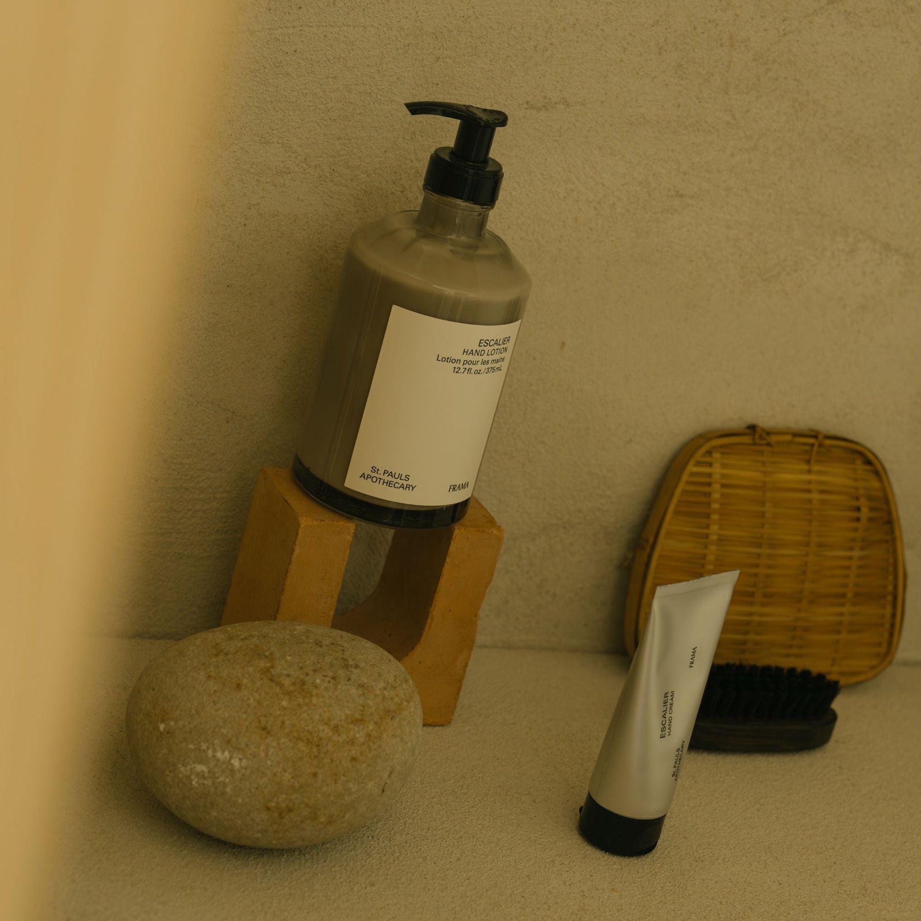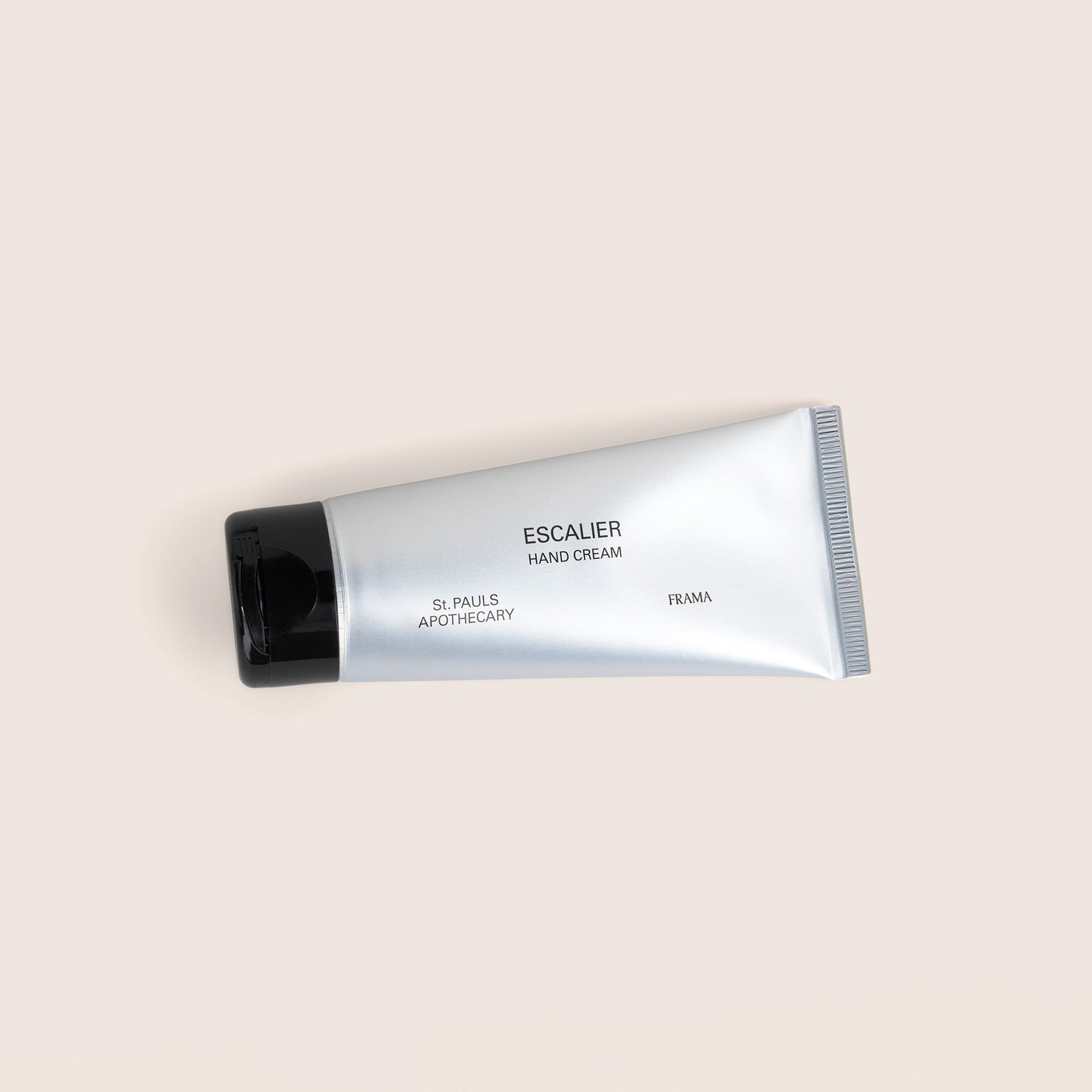 FRAMA’s Escalier Hand Crème is a nourishing treatment formulated with absorbent fatty acids that deliver lasting hydration to the skin, cuticles, and nails. Enriched with a rich blend of calming ingredients and softening emollients, it restores balance while leaving the hands silky and revitalized. The Escalier fragrance—layered with carrot seed, cardamom, vetiver, and blood orange—adds a spicy, bright, and exotic scent that is both uplifting and comforting. Conveniently packaged in a sleek tube, this hand cream is ideal for everyday rituals at home or on the go.