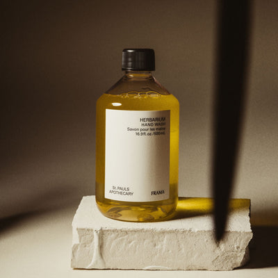Created to embody the calming essence of wild flora, FRAMA’s Herbarium Hand Wash is a mild, scented cleansing gel with a fresh yet exhilarating aroma and a subtle balsamic undertone. Crafted for everyday use and rooted in a palette of nuanced natural ingredients, it offers a lush, decadent scent that transforms the simple act of hand washing into a ritual of wellness. Presented in a reusable Italian glass bottle, this vegan, cruelty-free formula is suitable for all skin types and designed to be shared by all.