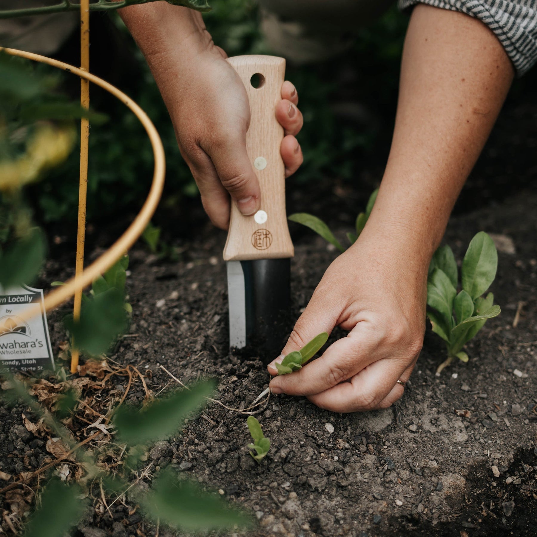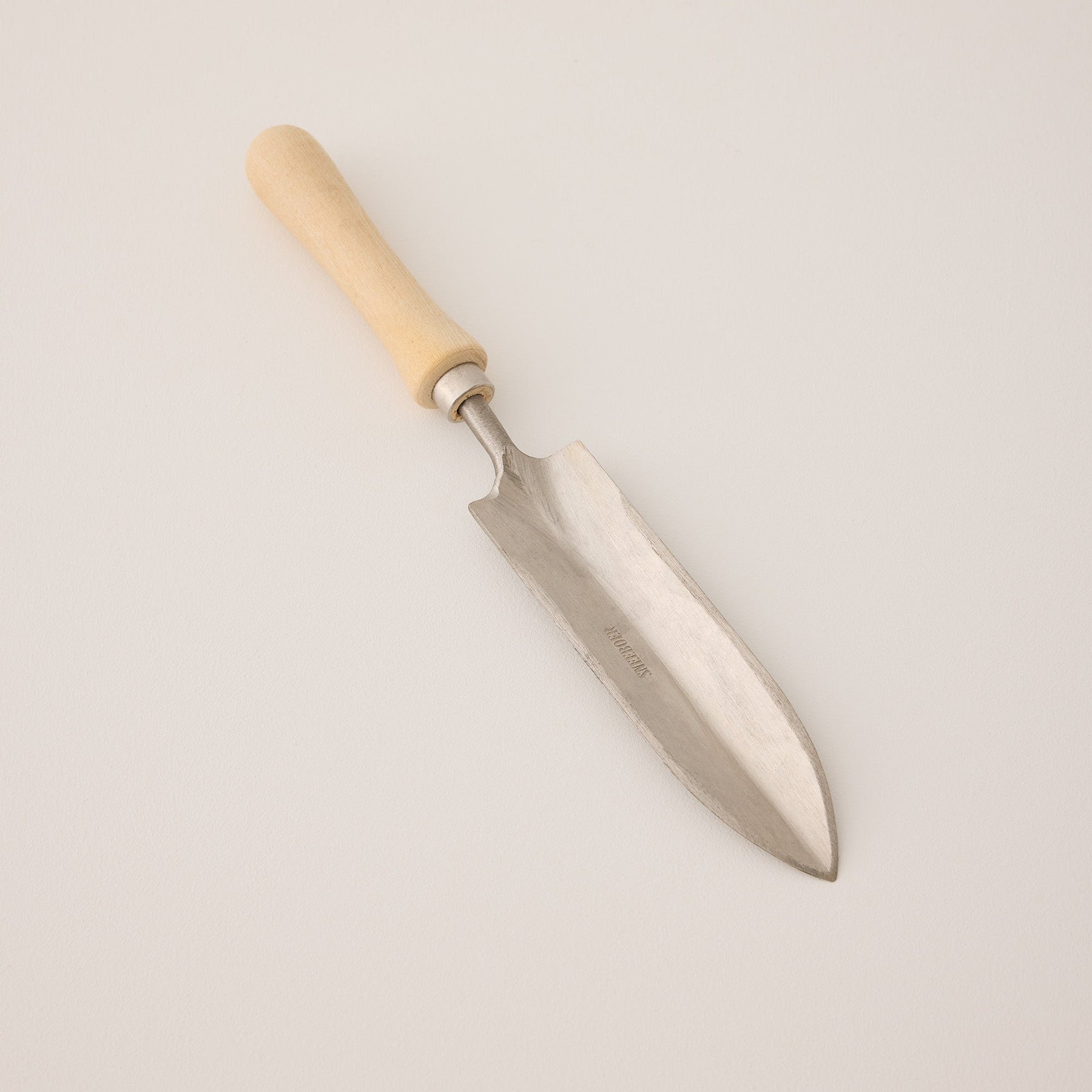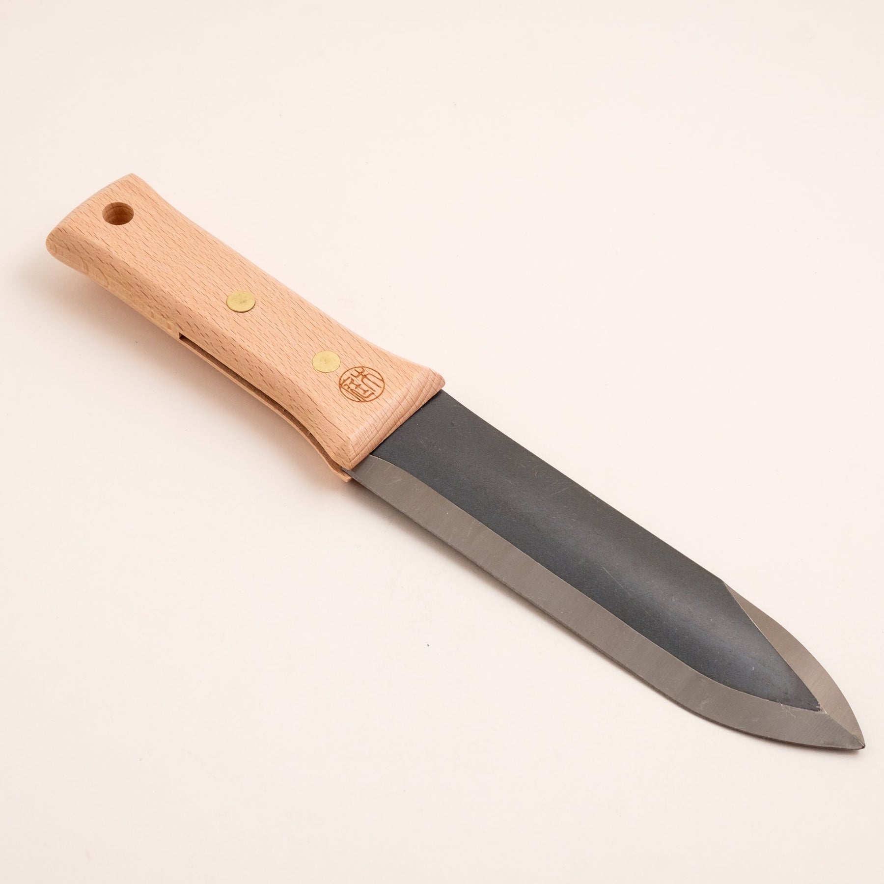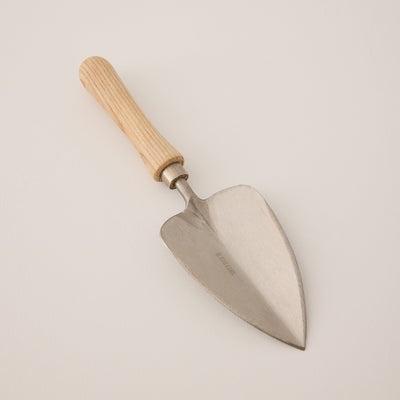 Hand-forged in Sanjo, Niigata by a father-and-son team of metalworkers, the Moku Trowel reflects generations of skill and care. Its surface bears subtle hammer marks, each one a trace of its making. Ideal for potting, planting, and light garden use, this trowel embodies quiet strength and craftsmanship—best reserved for softer soils rather than heavy digging.
