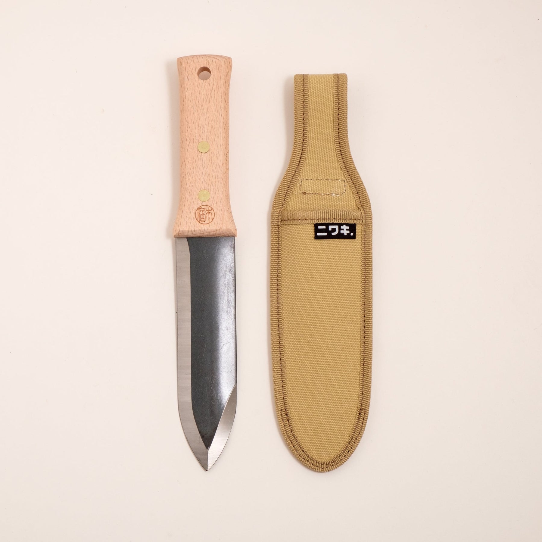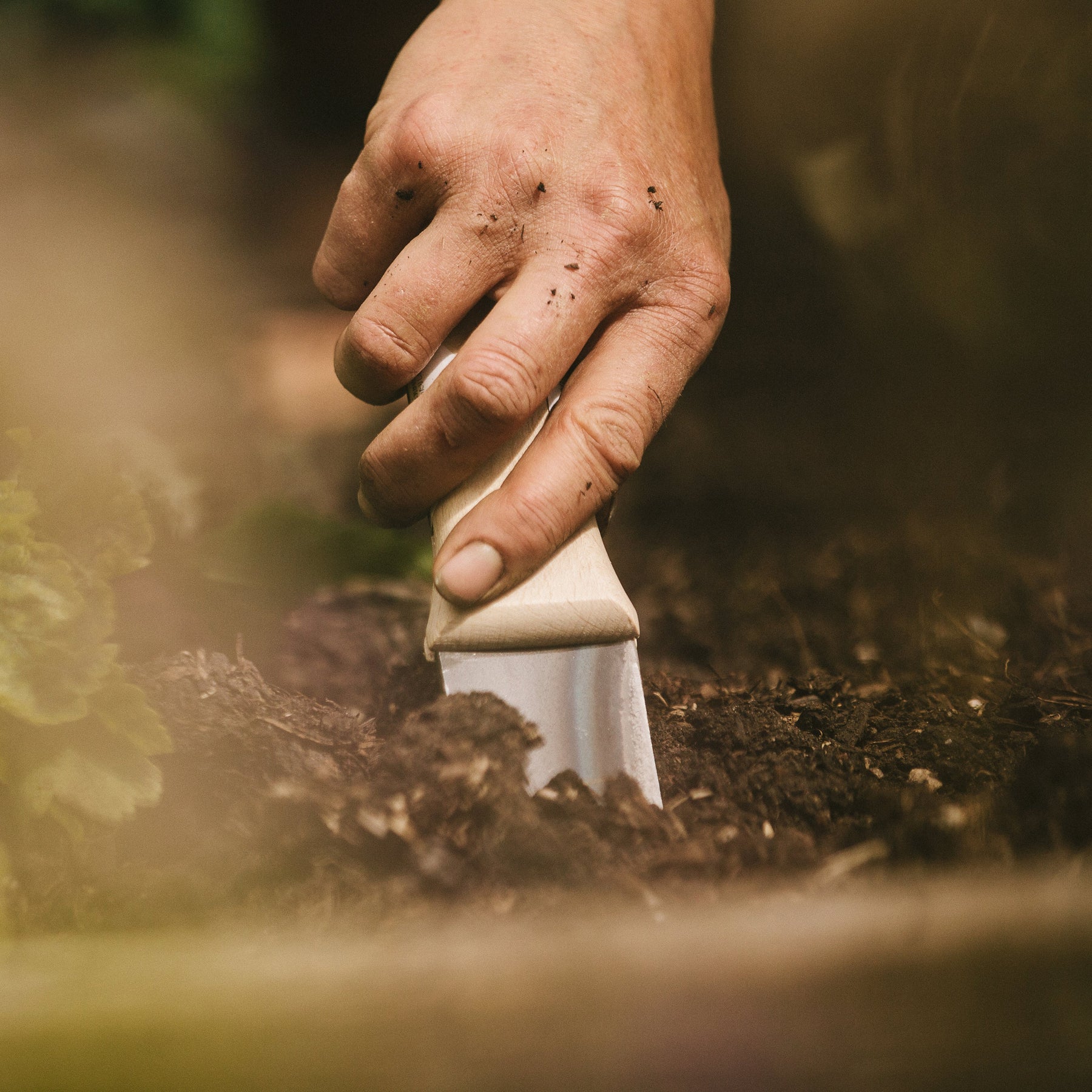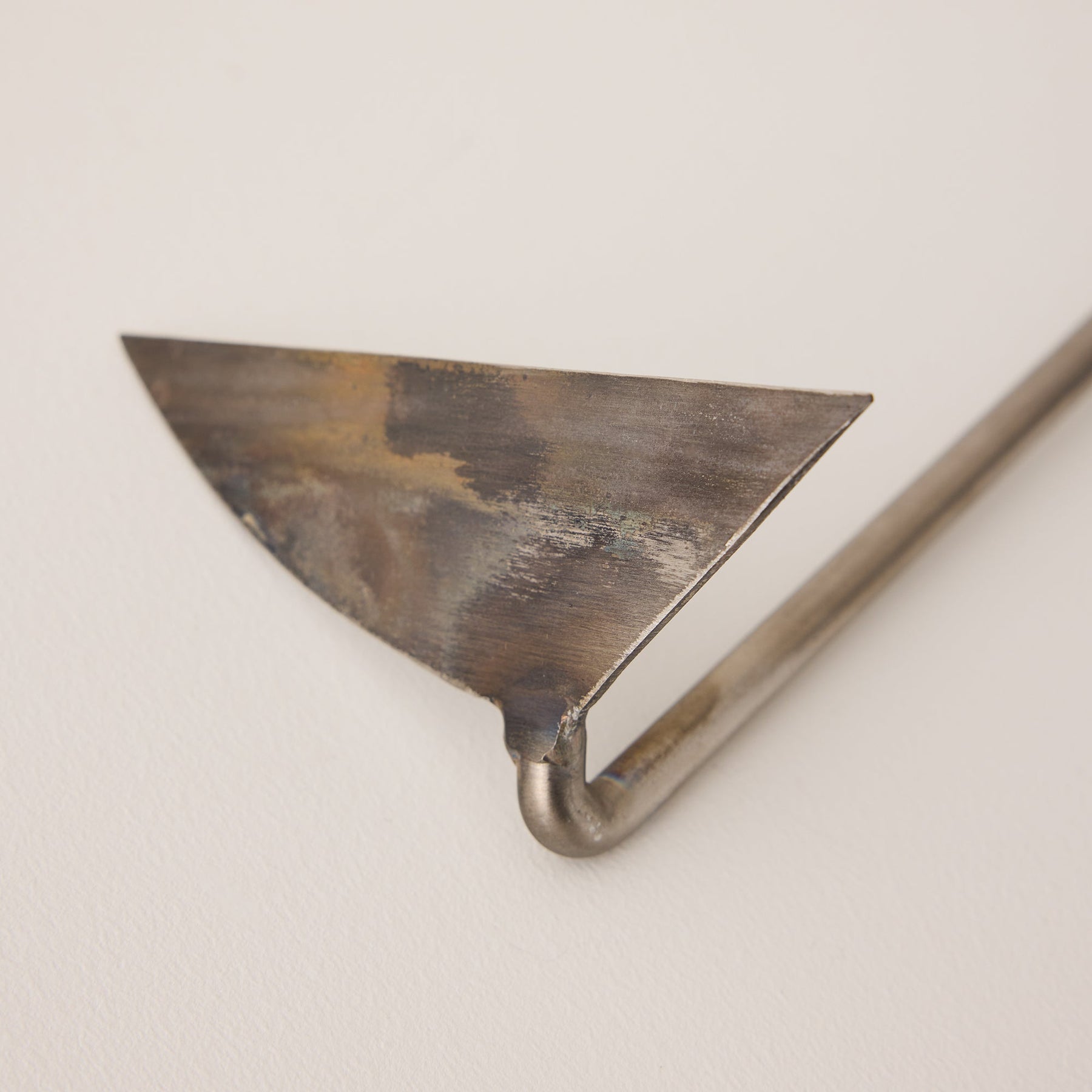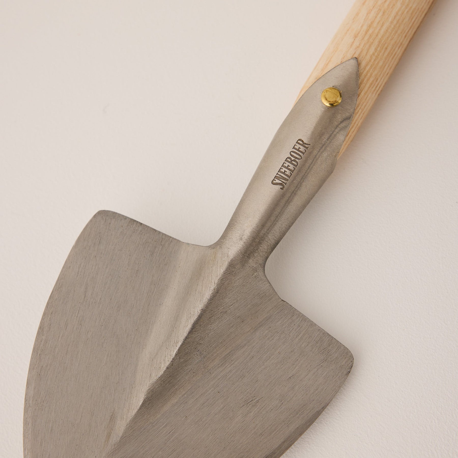 Hand-forged in Sanjo, Niigata by a father-and-son team of metalworkers, the Moku Trowel reflects generations of skill and care. Its surface bears subtle hammer marks, each one a trace of its making. Ideal for potting, planting, and light garden use, this trowel embodies quiet strength and craftsmanship—best reserved for softer soils rather than heavy digging.